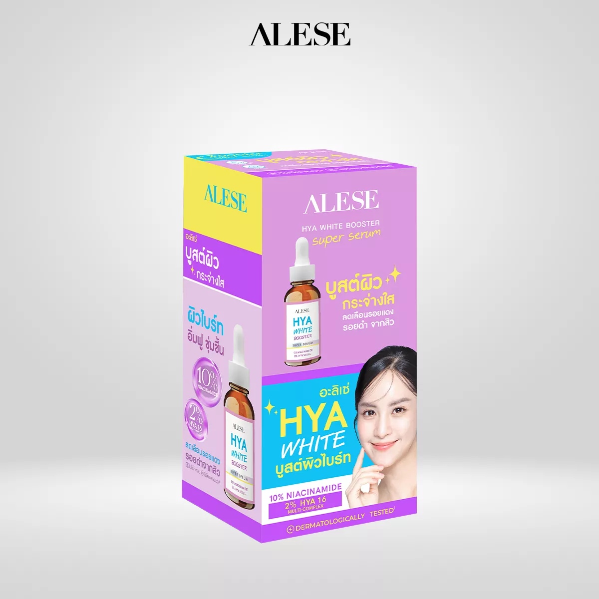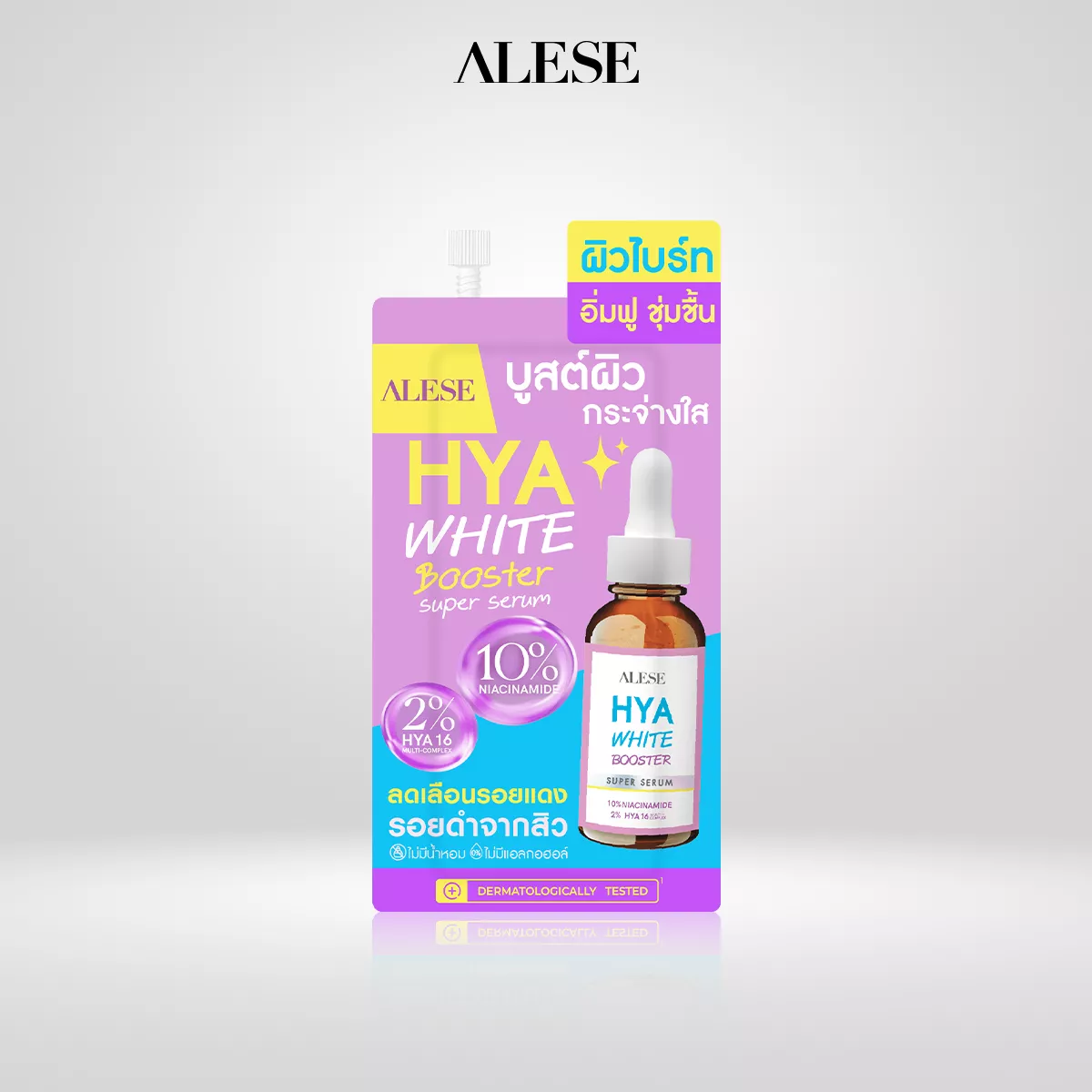 ขอแนะนำผลิตภัณฑ์ เซรั่มหน้าใส ลดรอยสิว ใหม่ล่าสุด “ALESE HYA WHITE BOOSTER SUPER SERUM” อะลิเซ่โดสไฮยา ผิวฉ่ำใส ไบร์ทx2 เซรั่มที่ได้รับการออกแบบและพัฒนามาเพื่อตอบโจทย์ปัญหาผิวของคนรุ่นใหม่โดยเฉพาะ ไม่ว่าจะเป็นปัญหารอยดำรอยแดงจากสิว ผิวหมองคล้ำขาดความกระจ่างใส หรือผิวขาดน้ำ ให้กลับมามีสุขภาพดี ชุ่มชื้น อิ่มฟู และกระจ่างใสอย่างเป็นธรรมชาติ